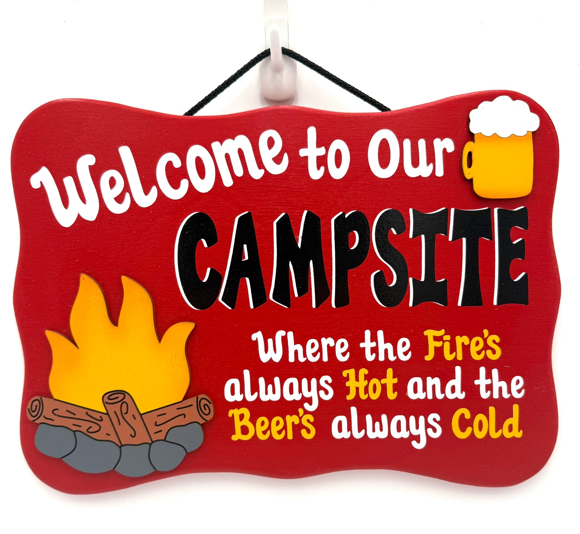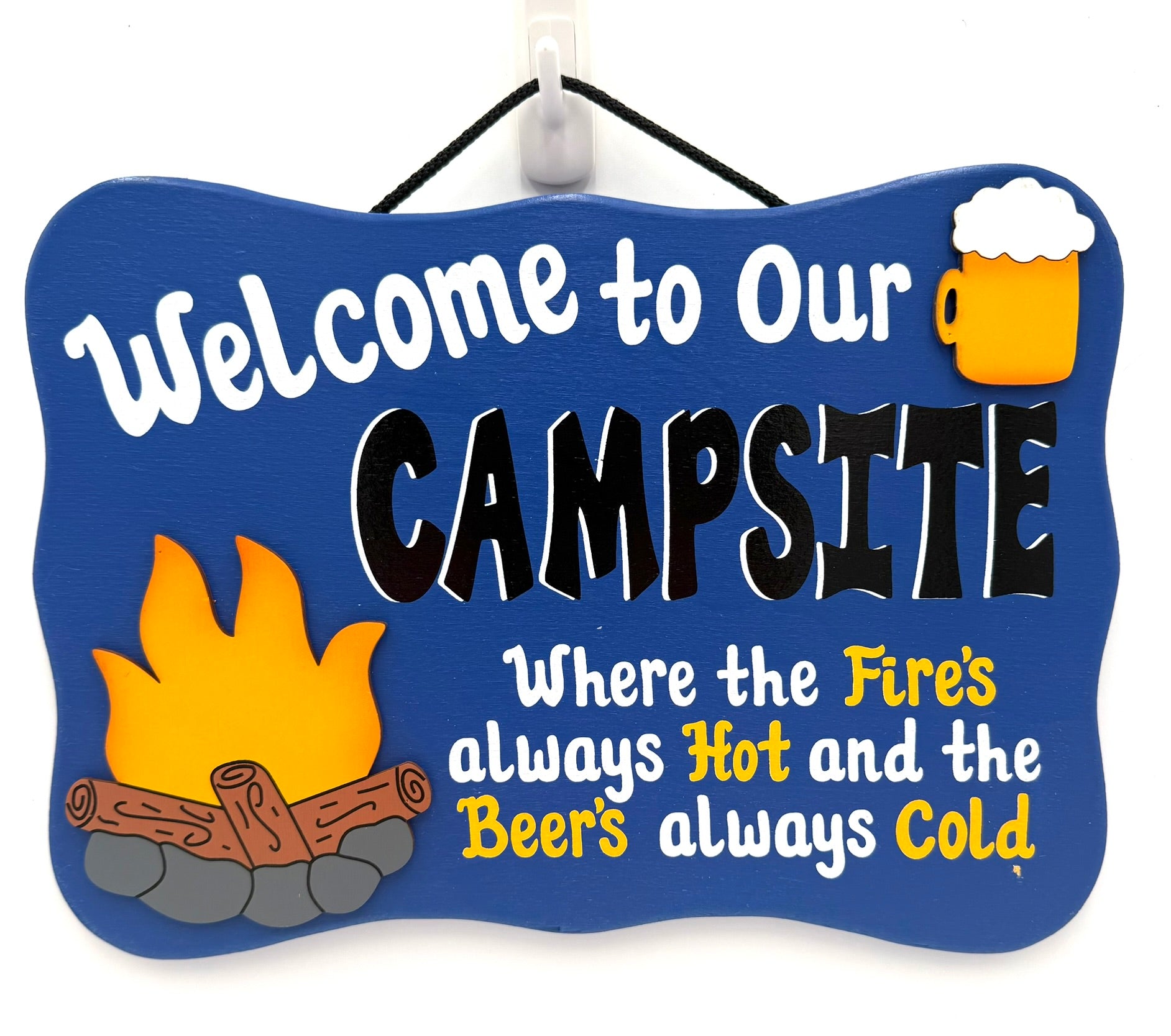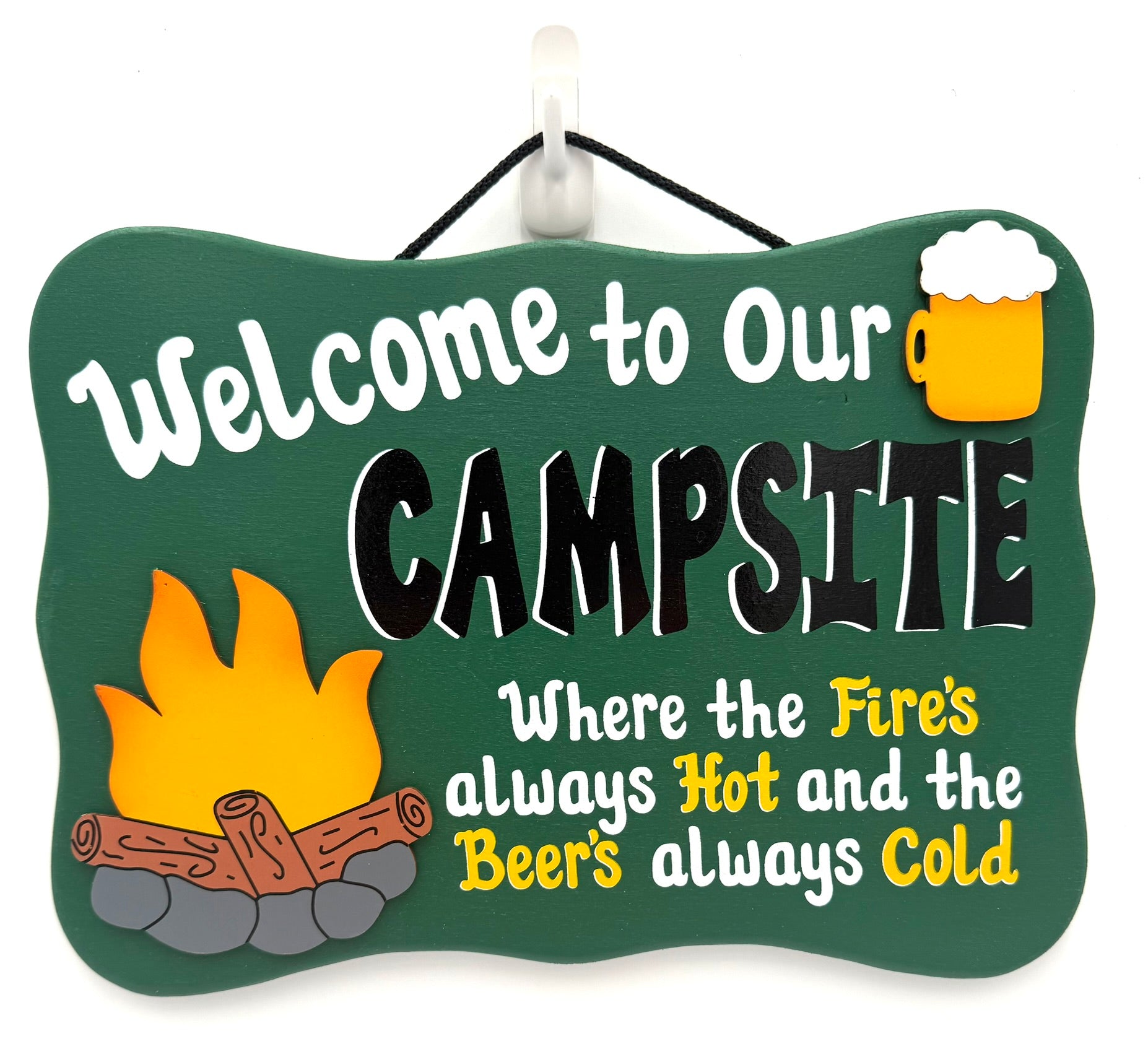• Load image into Gallery viewer, Fire's Hot Beer's Cold Camping Signs