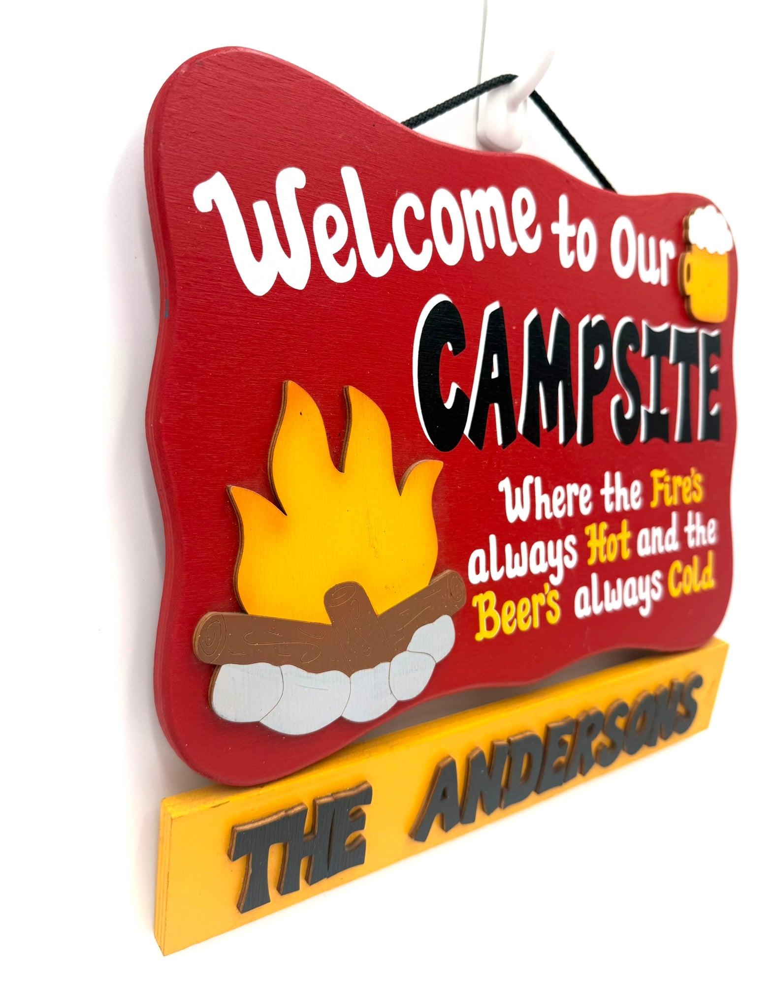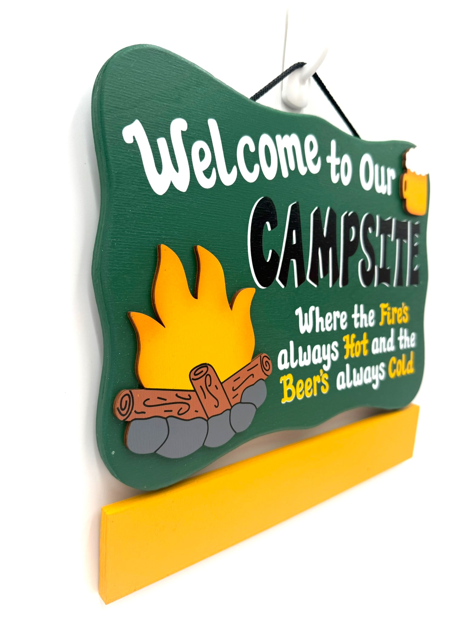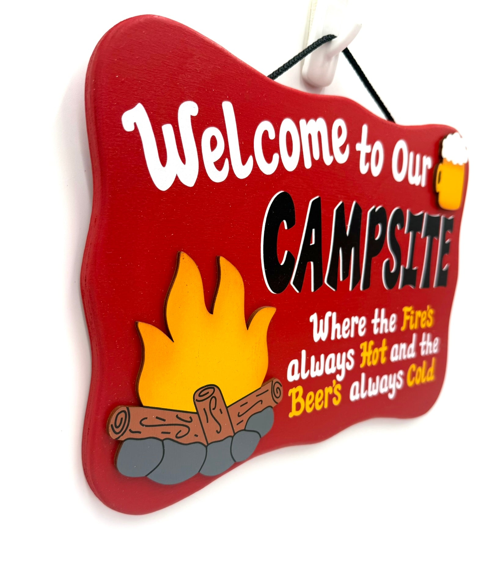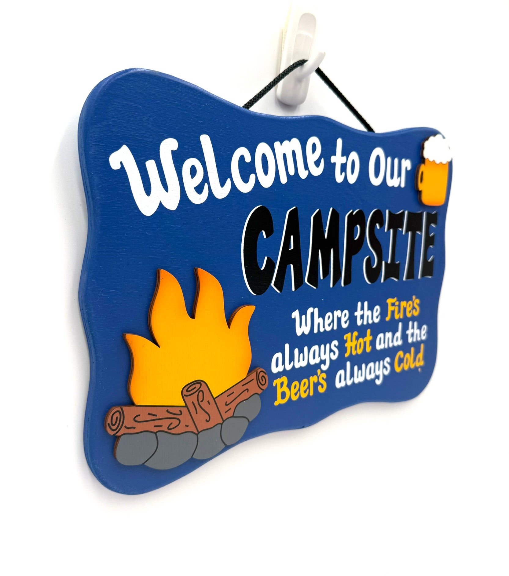• Load image into Gallery viewer, Fire's Hot Beer's Cold Camping Signs