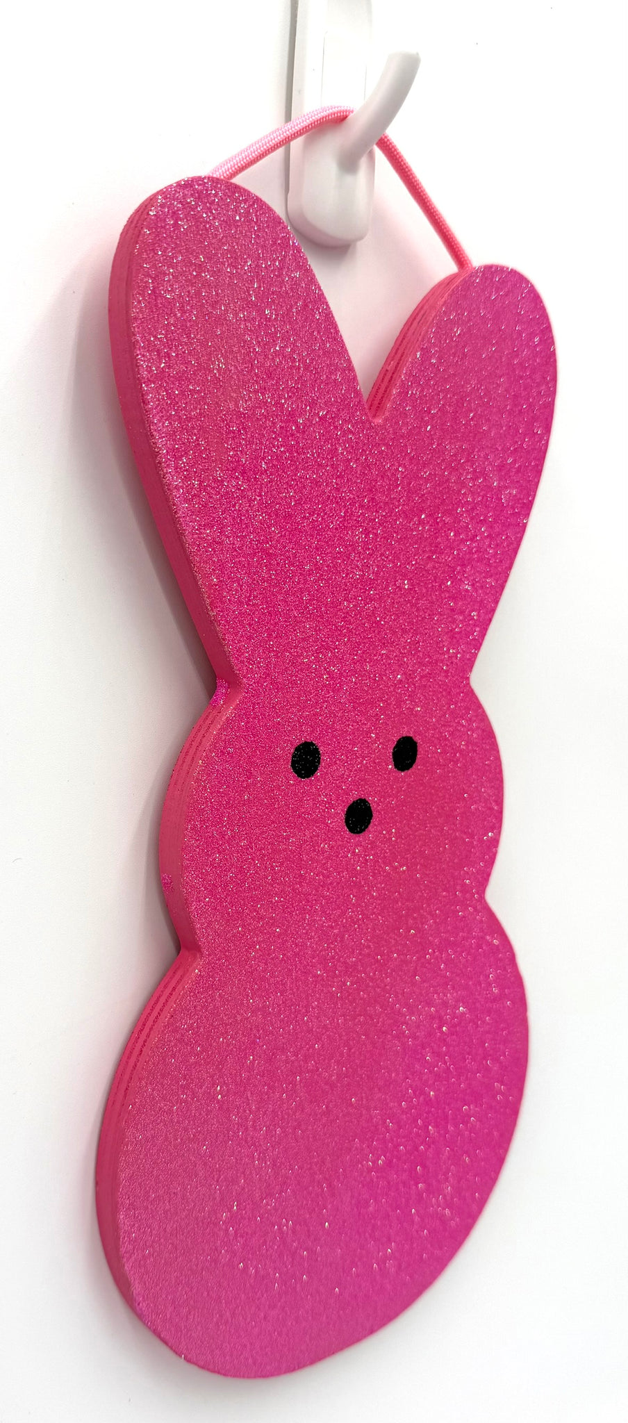 We all love "Peeps"! Peeps are handmade from wood & painted with a high quality paint. Carefully hand-painted, each peep features a touch of sparkling glitter. Matching nylon rope is secured to the back side to display as a hanging bunny sign. Peeps can be personalized with glittered white wooden letters. Your family name or a warm "Welcome" greeting, making it a delightful accent to your front door, entryway, mantel, or porch. Fill in name in notes to buyer section at checkout. Peeps-$10.95 Personalized-$14.95. Proudly designed and Made in the USA!