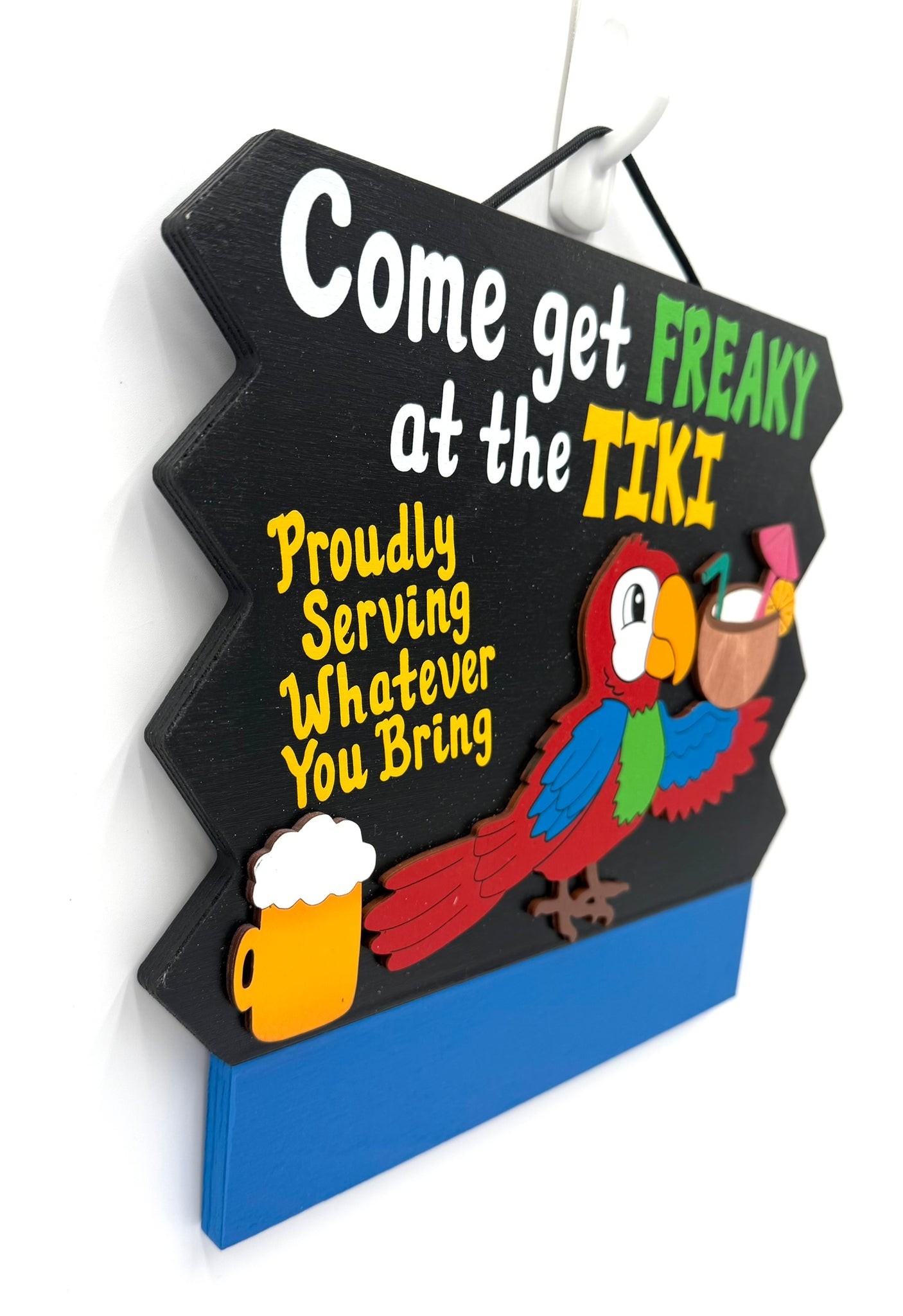 Hangs from sturdy nylon rope